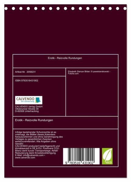 QUALITÄT - Hochwertiger Fotokalender mit 12 wunderschönen Motiven auf lichtbeständigem Bilderdruckpapier, robuste Spiralbindung.NACHHALTIG - deutliche Abfallreduzierung durch bedarfsgerechte Einzelstückfertigung, umweltfreundliches FSC-zertifiziertes Papier, Produktion in Deutschland, klimabewusste Logistik.PERFEKTES GESCHENK - Kalender für Freunde und Familie, für Erwachsene, zu Weihnachten, Geburtstag oder zwischendurch.VIELFALT - Bildkalender in verschiedenen Formaten, z.B. DIN A5, DIN A4, DIN A3 sowie DIN A2. Ob Naturmotiv, Gemälde oder Fotos, ideal für ein persönliches Wohlfühlambiente.Erotische und reizvolle Rundungen und weibliche Formen von Autor(in): Elisabeth Stanzer