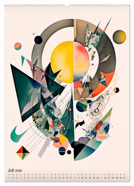 Geometrische Formen, Linien und Farben bestimmen die zwölf Motive dieses eindrucksvollen, futuristisch anmutenden Kalenders.