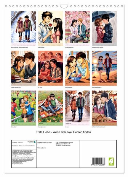 Entdecke die Magie der ersten Liebe! Unser Kalender "Erste Liebe - Wenn sich zwei Herzen finden" begleitet dich durch das Jahr mit zarten Illustrationen junger Menschen auf ihrer Reise ins Verliebtsein. Erlebe Momente voller Aufregung, Herzklopfen und zarter Gefühle - Monat für Monat ein neues Bild, das die Schönheit des Verliebens einfängt. Ein perfektes Geschenk für junge Mädchen - und vielleicht auch Jungs!