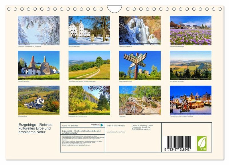 QUALITÄT - Hochwertiger Fotokalender mit 12 wunderschönen Motiven auf lichtbeständigem Bilderdruckpapier, robuste Spiralbindung mit Aufhängebügel.NACHHALTIG - deutliche Abfallreduzierung durch bedarfsgerechte Einzelstückfertigung, umweltfreundliches FSC-zertifiziertes Papier, Produktion in Deutschland, klimabewusste Logistik.PERFEKTES GESCHENK - Kalender für Freunde und Familie, für Kinder und Erwachsene, jung und alt, zu Weihnachten, Geburtstag oder zwischendurch.VIELFALT - Bildkalender in verschiedenen Formaten, z.B. DIN A5, DIN A4, DIN A3 sowie DIN A2. Ob Naturmotiv, Gemälde oder Fotos, ideal für ein persönliches Wohlfühlambiente.Eine fotografische Reise ins sächsische Erzgebirge von Autor(in): Thomas Polske