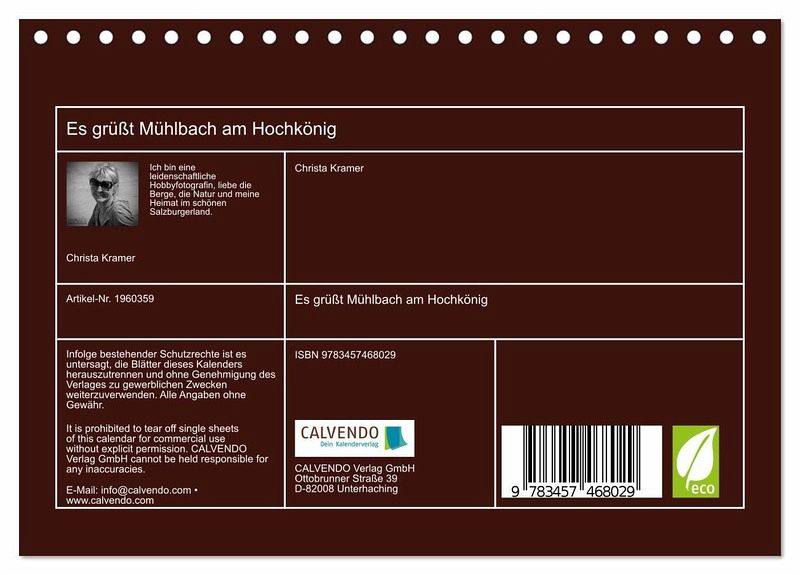 QUALITÄT - Hochwertiger Fotokalender mit 12 wunderschönen Motiven auf lichtbeständigem Bilderdruckpapier, robuste Spiralbindung.NACHHALTIG - deutliche Abfallreduzierung durch bedarfsgerechte Einzelstückfertigung, umweltfreundliches FSC-zertifiziertes Papier, Produktion in Deutschland, klimabewusste Logistik.PERFEKTES GESCHENK - Kalender für Freunde und Familie, für Kinder und Erwachsene, jung und alt, zu Weihnachten, Geburtstag oder zwischendurch.VIELFALT - Bildkalender in verschiedenen Formaten, z.B. DIN A5, DIN A4, DIN A3 sowie DIN A2. Ob Naturmotiv, Gemälde oder Fotos, ideal für ein persönliches Wohlfühlambiente.Die schönsten Plätze in Mühlbach am Hochkönig in den vier Jahreszeiten von Autor(in): Christa Kramer