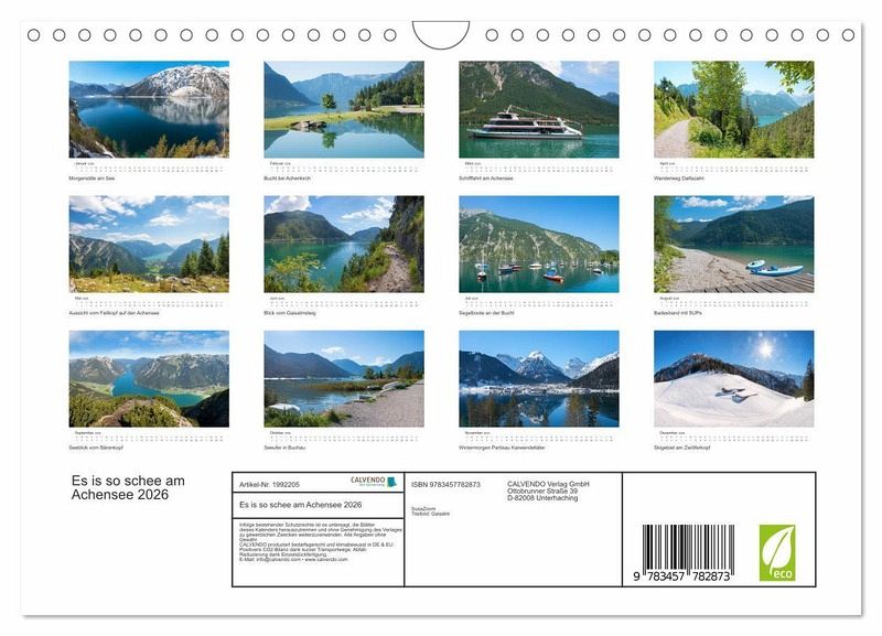 QUALITÄT - Hochwertiger Fotokalender mit 12 wunderschönen Motiven auf lichtbeständigem Bilderdruckpapier, robuste Spiralbindung mit Aufhängebügel.NACHHALTIG - deutliche Abfallreduzierung durch bedarfsgerechte Einzelstückfertigung, umweltfreundliches FSC-zertifiziertes Papier, Produktion in Deutschland, klimabewusste Logistik.PERFEKTES GESCHENK - Kalender für Freunde und Familie, für Kinder und Erwachsene, jung und alt, zu Weihnachten, Geburtstag oder zwischendurch.VIELFALT - Bildkalender in verschiedenen Formaten, z.B. DIN A5, DIN A4, DIN A3 sowie DIN A2. Ob Naturmotiv, Gemälde oder Fotos, ideal für ein persönliches Wohlfühlambiente.Landschaften rund um den Tiroler Alpensee von Autor(in): SusaZoom