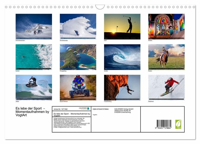 QUALITÄT - Hochwertiger Fotokalender mit 12 wunderschönen Motiven auf lichtbeständigem Bilderdruckpapier, robuste Spiralbindung mit Aufhängebügel.NACHHALTIG - deutliche Abfallreduzierung durch bedarfsgerechte Einzelstückfertigung, umweltfreundliches FSC-zertifiziertes Papier, Produktion in Deutschland, klimabewusste Logistik.PERFEKTES GESCHENK - Kalender für Freunde und Familie, für Kinder und Erwachsene, jung und alt, zu Weihnachten, Geburtstag oder zwischendurch.VIELFALT - Bildkalender in verschiedenen Formaten, z.B. DIN A5, DIN A4, DIN A3 sowie DIN A2. Ob Naturmotiv, Gemälde oder Fotos, ideal für ein persönliches Wohlfühlambiente.Sport und Spaß in spektakulären Fotos! von Autor(in): VogtArt