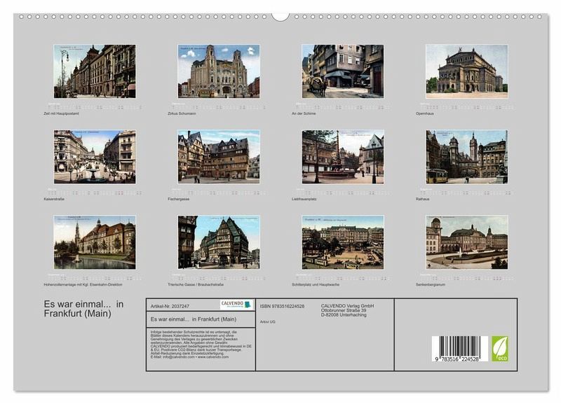 Zu Beginn des 20. Jahrhunderts war Frankfurt a.M. zwar noch keine Metropole, aber immerhin schon ein sehr schmuckes Städtchen. Die Kalendermotive vermitteln ein lebendiges Bild der Stadt bevor der 2. Weltkrieg viele alte Gebäude und Plätze zerstört hat.