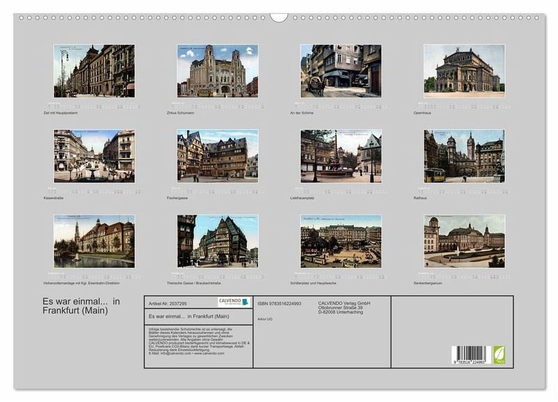 Zu Beginn des 20. Jahrhunderts war Frankfurt a.M. zwar noch keine Metropole, aber immerhin schon ein sehr schmuckes Städtchen. Die Kalendermotive vermitteln ein lebendiges Bild der Stadt bevor der 2. Weltkrieg viele alte Gebäude und Plätze zerstört hat.