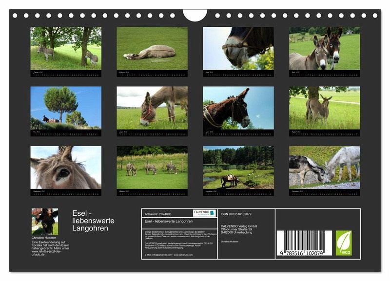 QUALITÄT - Hochwertiger Fotokalender mit 12 wunderschönen Motiven auf lichtbeständigem Bilderdruckpapier, robuste Spiralbindung mit Aufhängebügel.NACHHALTIG - deutliche Abfallreduzierung durch bedarfsgerechte Einzelstückfertigung, umweltfreundliches FSC-zertifiziertes Papier, Produktion in Deutschland, klimabewusste Logistik.PERFEKTES GESCHENK - Kalender für Freunde und Familie, für Kinder und Erwachsene, jung und alt, zu Weihnachten, Geburtstag oder zwischendurch.VIELFALT - Bildkalender in verschiedenen Formaten, z.B. DIN A5, DIN A4, DIN A3 sowie DIN A2. Ob Naturmotiv, Gemälde oder Fotos, ideal für ein persönliches Wohlfühlambiente.Ein Portrait über Esel, die liebenswerten Langohren. von Autor(in): Christine Hutterer