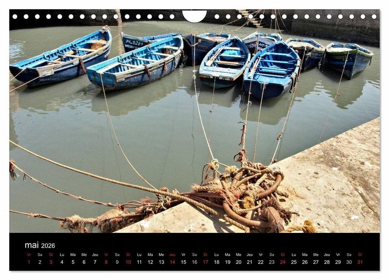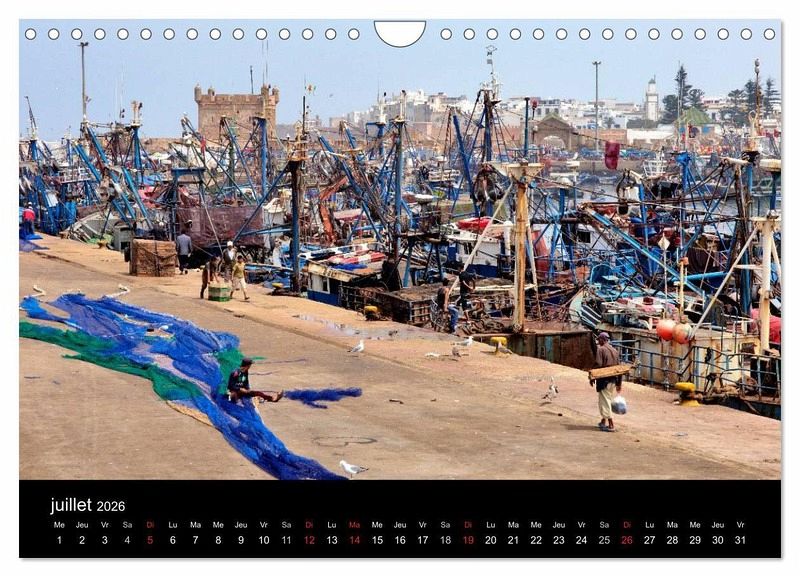 Dans l'ancienne Mogador, le bleu règne en maître.Situé à l'ouest de la ville, le port est aujourd'hui le troisième port de pêche sardinier du royaume, mais aussi un important chantier naval où l'on y construit et répare des bateaux traditionnels.