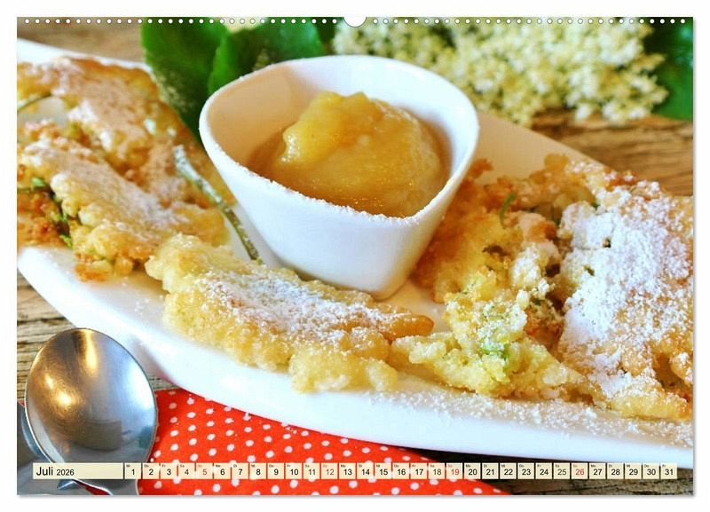 Juli: Gebackene Hollunderblüten mit Apfelmus