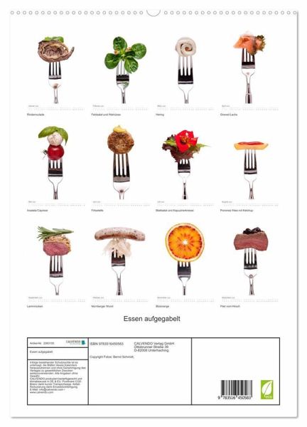 PREMIUM-LINIE - Brillanter Fotokalender mit 12 wunderschönen Motiven, Kunstdruck in Hochglanz in Museumsqualität.QUALITÄT - edle Materialien, stabile Rückwand mit 2 innovativen Einstecktaschen für eine optimale Präsentation an der Wand.NACHHALTIG - deutliche Abfallreduzierung durch bedarfsgerechte Einzelstückfertigung, umweltfreundliches FSC-zertifiziertes Papier, Produktion in Deutschland, klimabewusste Logistik.PERFEKTES GESCHENK - Kalender für Freunde und Familie, für Kinder und Erwachsene, jung und alt, zu Weihnachten, Geburtstag oder zwischendurch.Leckeres Essen auf einer Gabel von Autor(in): Bernd Schmidt