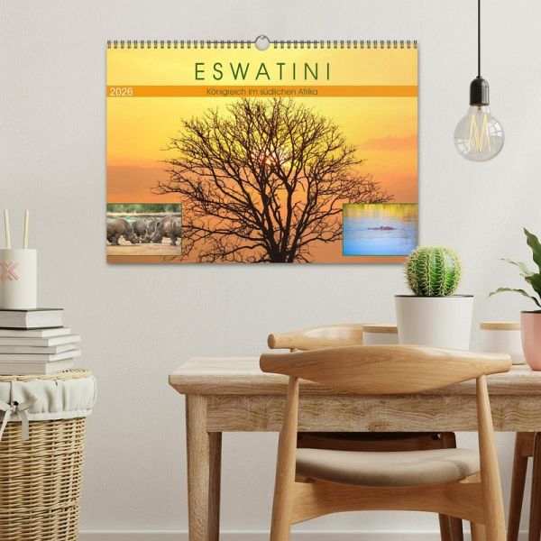 Eswatini, bis 2018 Swasiland. Ein kleines Land voller Naturschönheiten. Hier lassen sich Landschaften und Tiere - wie Nashörner, Löwen, Krokodile, Elefanten - hautnah erkunden. Der Kalender präsentiert afrikanische Flora und Fauna in stimmungsvollen Bildern.