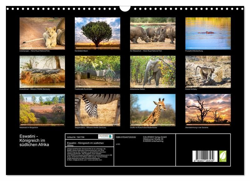 QUALITÄT - Hochwertiger Fotokalender mit 12 wunderschönen Motiven auf lichtbeständigem Bilderdruckpapier, robuste Spiralbindung mit Aufhängebügel.NACHHALTIG - deutliche Abfallreduzierung durch bedarfsgerechte Einzelstückfertigung, umweltfreundliches FSC-zertifiziertes Papier, Produktion in Deutschland, klimabewusste Logistik.PERFEKTES GESCHENK - Kalender für Freunde und Familie, für Kinder und Erwachsene, jung und alt, zu Weihnachten, Geburtstag oder zwischendurch.VIELFALT - Bildkalender in verschiedenen Formaten, z.B. DIN A5, DIN A4, DIN A3 sowie DIN A2. Ob Naturmotiv, Gemälde oder Fotos, ideal für ein persönliches Wohlfühlambiente.Ehemals Swasiland. Afrikanische Landschaften und wilde Tiere. von Autor(in): U-DO