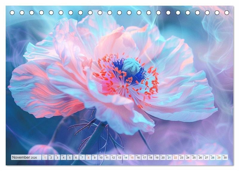 Dive into the enchanting realm of this ethereal floral calendar created with the help of AI. Each page invites you to witness the fleeting beauty of nature's finest creations, and the delicate allure of these flowers transports you to a world of grace and botanical poetry. This calendar is perfect for adorning your walls or for gifting to loved ones.