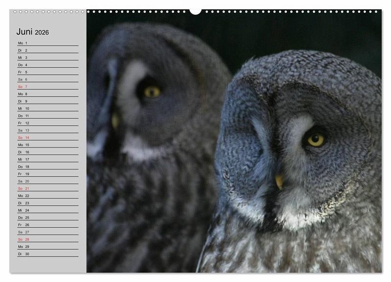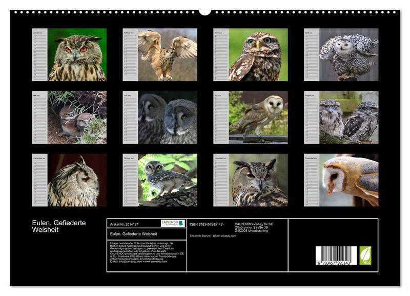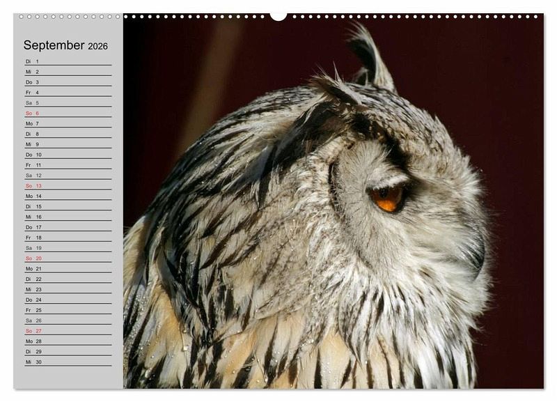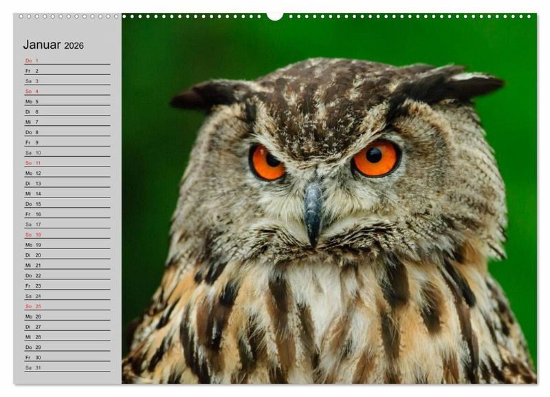 Durch ihre großen Augen wirken sie fast ein wenig menschlich. Eulen sind Nachtvögel die man leider selten zu sehen bekommt. Manchmal jedoch hört man ihre nächtlichen Schreie. Es sind wunderschöne Vögel denen man Weisheit zuschreibt. Ein schöner Planer für die ganze Familie.