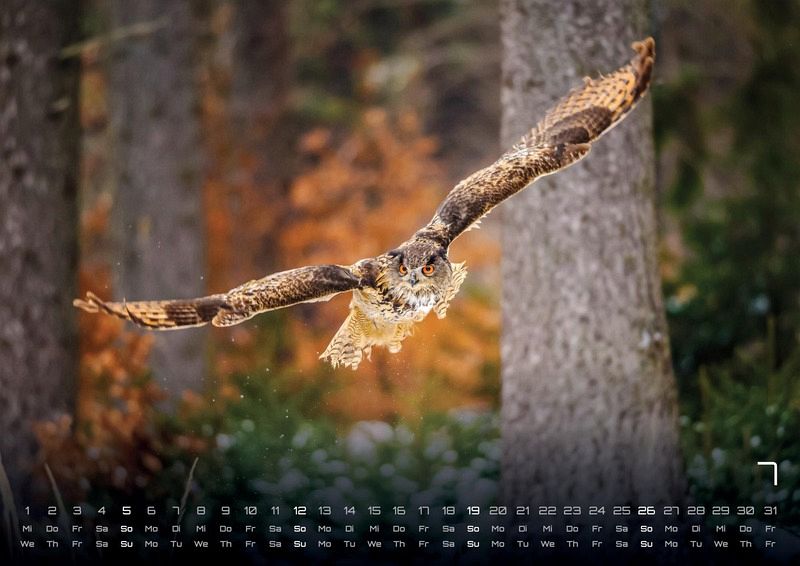 Kaum Sichtbar - die Wächter der Nacht! Seid gespannt auf brillante Aufnahmen der Eulen, Uhus oder Kauze und sichert euch euer Exemplar im Format DIN A3, DIN A2 (extragroß) für das Jahr 2026!