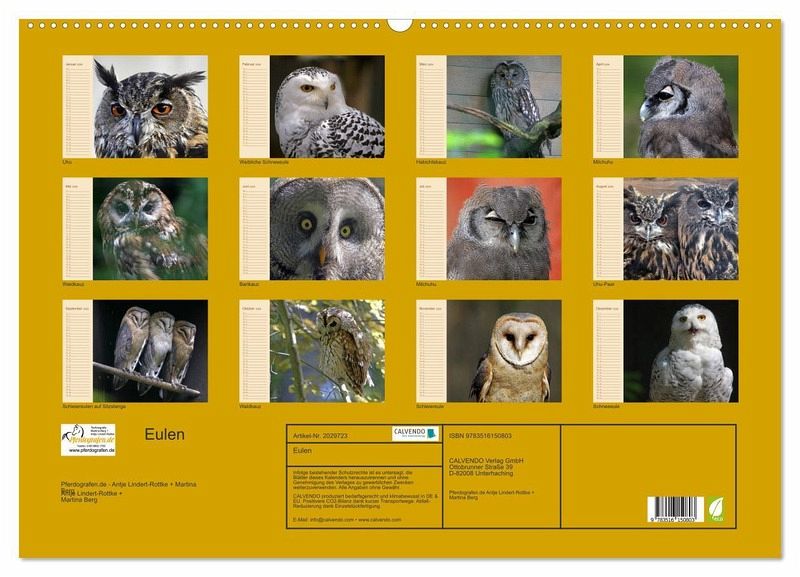 Eulen: Elegant und geheimnisvoll. Schon immer haben die scheuen Nachtvögel eine besondere Bedeutung für die Menschen. Bei den alten Griechen galten sie zum Beispiel als Symbol für Weisheit. Lassen Sie sich von den faszinierenden Vögeln mit dem besonderen Reiz durch das Jahr begleiten und vergessen Sie keinen Geburtstag und kein Jubiläum mehr!
