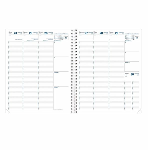 Quo Vadis - Terminkalender - Spiralbindung - 2026 - Eurequart S - Die Woche Planning - Deutsch - Club - Schwarz - Jan/Dez - 24x30 cm - Clairefontaine-Papier Weiß - Hergestellt in Frankreich Wochenkalender mit 15-Minuten-Zeitfenster, zum Eintragen von besonders vielen Terminen Enthält auf jeder Doppelseite einen freien Bereich zum Notieren wichtiger Informationen (zu kontaktierende Personen, zu erledigende Dinge usw.) Papier Clairefontaine, weiß, für ein glattes und flüssiges Schreibgefühl, perforierte abreißbare Ecken für eine einfache Orientierung Abnehmbarer Deckel und nachfüllbarer Inhalt für eine lange Verwendung Aufbewahrungstaschen für kleine Dokumente, Sattlerstiche für eine hochwertige Oberfläche