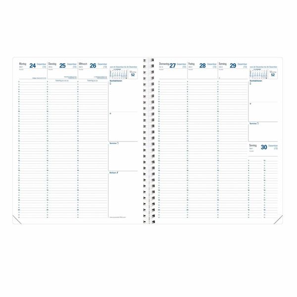 DER KLASSIKER - MIT VIERTELSTÜNDLICHER TERMINEINTEILUNG: Kalender im Querformat mit Wochennotizen Weißes Papier 13 Monate: Dezember bis Dezember Von 7.00 Uhr bis 20.45 Uhr Metallspiralbindung Wissenswerte Informationen Eingebundenes Adressenverzeichnis