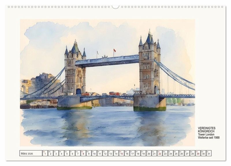 Historische Welterbestätten im Aquarellstil fangen die Vielfalt der Kontinente in zarten, fließenden Farbnuancen ein, die Raum für Fantasie lässt. Der Stil betont Atmosphären statt exakte Detailwiedergabe, wodurch Stätten als lebendige Zeugnisse von Geschichte und Kultur erscheinen. Mithilfe moderner Bildbearbeitung wurden aus Fotos zauberhafte Bilder im Aquarellstil