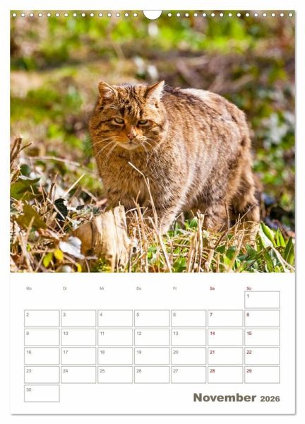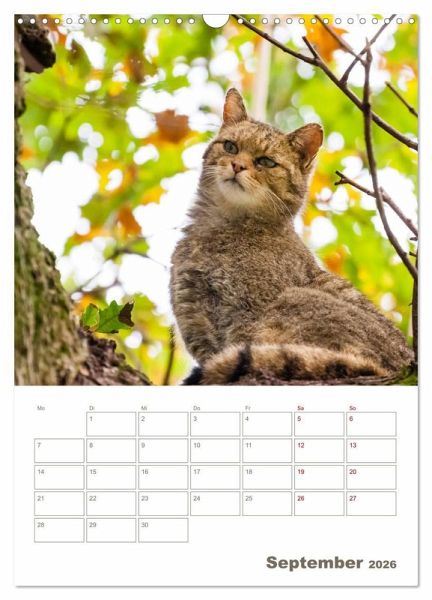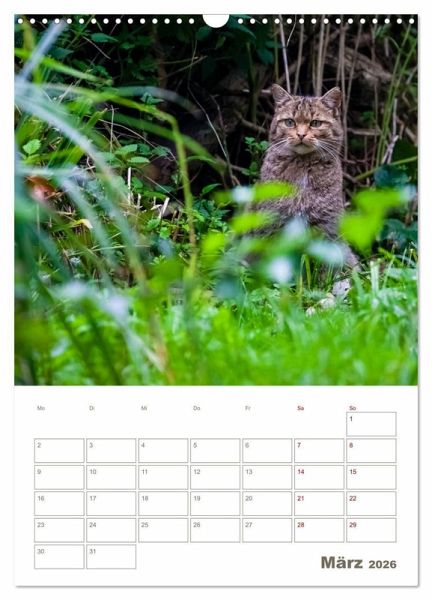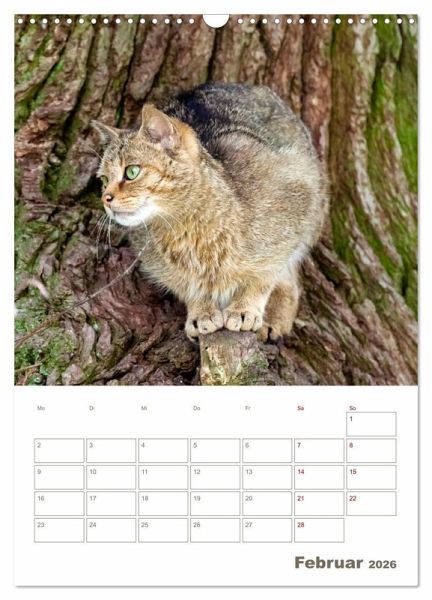 Die Europäische Wildkatze oder Waldkatze lebt vorwiegend in Laub- und Mischwäldern, die von Menschen ungestört sind. Sie leben zurückgezogen und kaum jemand bekommt die scheuen Einzelgänger je zu Gesicht. Der Kalender zeigt diese schönen Katzen nun ganz nah und zeigt die charismatischen Tiere jeden Monat aus einem anderen Blickwinkel. Die Aufnahmen sind im Wisentgehege Springe entstanden, wo die Wildkatze durch ein naturgetreues Gehege streift.