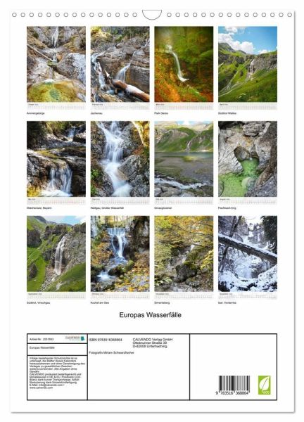 QUALITÄT - Hochwertiger Fotokalender mit 12 wunderschönen Motiven auf lichtbeständigem Bilderdruckpapier, robuste Spiralbindung mit Aufhängebügel.NACHHALTIG - deutliche Abfallreduzierung durch bedarfsgerechte Einzelstückfertigung, umweltfreundliches FSC-zertifiziertes Papier, Produktion in Deutschland, klimabewusste Logistik.PERFEKTES GESCHENK - Kalender für Freunde und Familie, für Kinder und Erwachsene, jung und alt, zu Weihnachten, Geburtstag oder zwischendurch.VIELFALT - Bildkalender in verschiedenen Formaten, z.B. DIN A5, DIN A4, DIN A3 sowie DIN A2. Ob Naturmotiv, Gemälde oder Fotos, ideal für ein persönliches Wohlfühlambiente.Wasserfälle der Alpen und Europas Berge von Autor(in): Fotografin Schwarzfischer Miriam