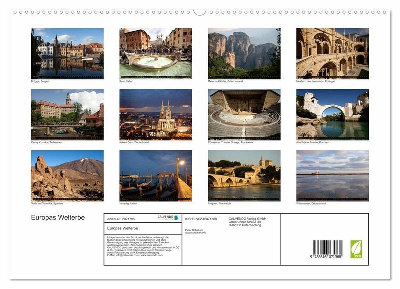 PREMIUM-LINIE - Brillanter Fotokalender mit 12 wunderschönen Motiven, Kunstdruck in Hochglanz in Museumsqualität.QUALITÄT - edle Materialien, stabile Rückwand mit 2 innovativen Einstecktaschen für eine optimale Präsentation an der Wand.NACHHALTIG - deutliche Abfallreduzierung durch bedarfsgerechte Einzelstückfertigung, umweltfreundliches FSC-zertifiziertes Papier, Produktion in Deutschland, klimabewusste Logistik.PERFEKTES GESCHENK - Kalender für Freunde und Familie, für Kinder und Erwachsene, jung und alt, zu Weihnachten, Geburtstag oder zwischendurch.Die Vielfalt des europäischen Welterbes in einem Kalender vom Reisefotograf Peter Schickert. von Autor(in): Peter Schickert
