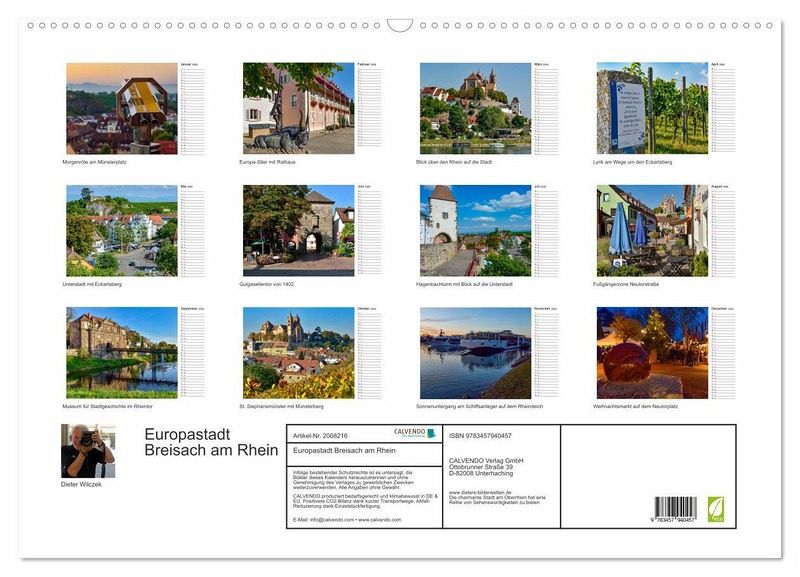 Die Stadt Breisach liegt zwischen Colmar und Freiburg im Breisgau. Schon von weitem erkennt man das Wahrzeichen der badischen Stadt, das St. Stephansmünster. Der Erlebnisfotograf Dieter Wilczek hat die Stadt mit ihrem ganz eigenen, unwiderstehlichen Charme schätzen und lieben gelernt. Deshalb besucht er sie seit vielen Jahren und zu verschiedenen Jahreszeiten. Seine schönsten Motive hat er in diesem Kalender zusammen gestellt.