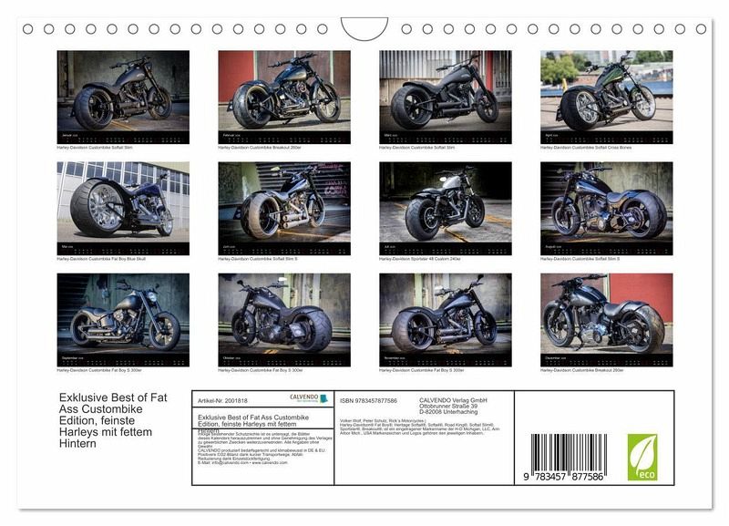 Das sind die Träume, die erfüllt werden wollen! Exklusive Harley-Davidson Custombikes, das sind ganz besondere Eyecatcher, dieser Kalender wird bei jedem Harley Fan einen besonderen Platz bekommen. Die Harley-Davidson Fat Ass Edition zeigt Umbauten mit bis zu 300er Reifengrößen aus der Rick s Motorcýcles Custombike Edelschmiede.