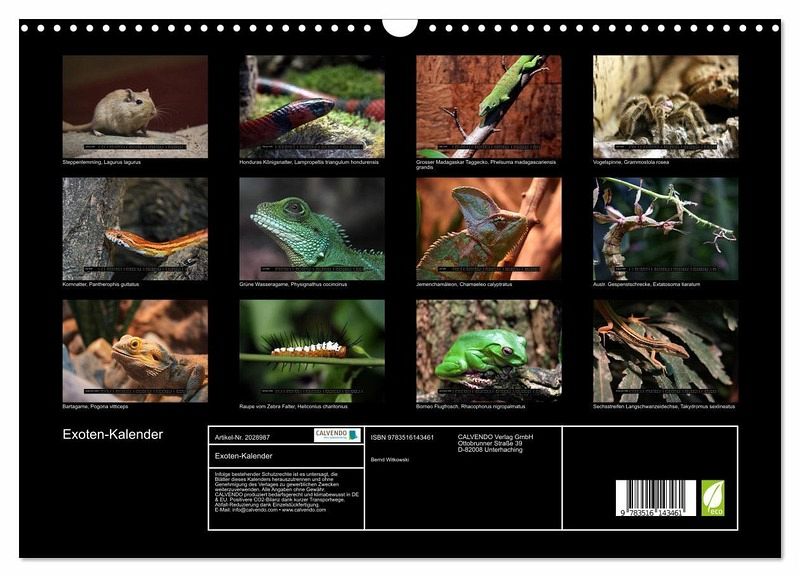 QUALITÄT - Hochwertiger Fotokalender mit 12 wunderschönen Motiven auf lichtbeständigem Bilderdruckpapier, robuste Spiralbindung mit Aufhängebügel.NACHHALTIG - deutliche Abfallreduzierung durch bedarfsgerechte Einzelstückfertigung, umweltfreundliches FSC-zertifiziertes Papier, Produktion in Deutschland, klimabewusste Logistik.PERFEKTES GESCHENK - Kalender für Freunde und Familie, für Kinder und Erwachsene, jung und alt, zu Weihnachten, Geburtstag oder zwischendurch.VIELFALT - Bildkalender in verschiedenen Formaten, z.B. DIN A5, DIN A4, DIN A3 sowie DIN A2. Ob Naturmotiv, Gemälde oder Fotos, ideal für ein persönliches Wohlfühlambiente.Exotische Tiere, ein toller Wandschmuck im Büro oder zu Hause. von Autor(in): Mico10