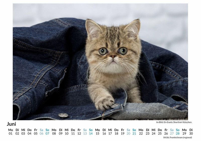 Entdecken Sie die faszinierende Welt der Exotisch Kurzhaar mit unserem hochwertigen Monats-Wandkalender! Jede Seite präsentiert ein liebevoll ausgewähltes Motiv dieser charmanten Katzenrasse, die mit ihrem plüschigen Fell und den großen, ausdrucksstarken Augen begeistert. Gedruckt auf FSC-zertifiziertem, lichtbeständigem Bilderdruckpapier, bringt dieser Kalender nicht nur Freude in Ihr Zuhause, sondern auch Nachhaltigkeit. Perfekt für Katzenliebhaber und alle, die das Besondere schätzen. Holen Sie sich 12 Monate voller Eleganz und Niedlichkeit - ein echter Hingucker an jeder Wand! Made in Germany, für höchste Qualität und Umweltbewusstsein. Jetzt bestellen und Freude verschenken! Hochwertig Erleben Sie ein Jahr voller Eleganz mit unserem Premium-Fotokalender. Jedes der 12 Motive ist auf hochwertigem, lichtbeständigem Bilderdruckpapier gedruckt, um die Lebendigkeit jedes Bildes zu bewahren. Die robuste Spiralbindung gewährleistet Langlebigkeit und einfache Handhabung. Nachhaltig Unser Engagement für die Umwelt spiegelt sich in jedem Exemplar wider. Durch die Produktion auf Abruf reduzieren wir signifikant unseren Abfall. Wir verwenden ausschließlich umweltfreundliches, FSC-zertifiziertes Papier. Stolz gefertigt in Deutschland, achten wir bei unserer Logistik auf Klimaschutz, um unseren ökologischen Fußabdruck zu minimieren. Das ideale Geschenk Dieser Kalender ist das perfekte Präsent für jeden Anlass - ob Weihnachten, Geburtstage oder einfach als liebevolle Aufmerksamkeit zwischendurch. Geeignet für Freunde, Familie, Kinder und Erwachsene gleichermaßen, bereichert er jedes Zuhause mit seiner Vielfalt und Schönheit, unabhängig vom Alter der Beschenkten.