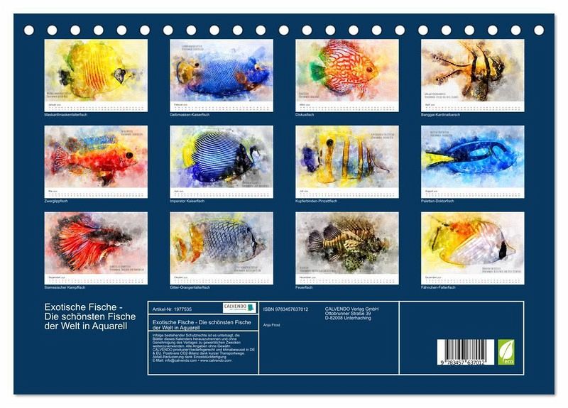 QUALITÄT - Hochwertiger Fotokalender mit 12 wunderschönen Motiven auf lichtbeständigem Bilderdruckpapier, robuste Spiralbindung.NACHHALTIG - deutliche Abfallreduzierung durch bedarfsgerechte Einzelstückfertigung, umweltfreundliches FSC-zertifiziertes Papier, Produktion in Deutschland, klimabewusste Logistik.PERFEKTES GESCHENK - Kalender für Freunde und Familie, für Kinder und Erwachsene, jung und alt, zu Weihnachten, Geburtstag oder zwischendurch.VIELFALT - Bildkalender in verschiedenen Formaten, z.B. DIN A5, DIN A4, DIN A3 sowie DIN A2. Ob Naturmotiv, Gemälde oder Fotos, ideal für ein persönliches Wohlfühlambiente.Farbenprächtige Fische im Süß- und Salzwasser von Autor(in): Anja Frost