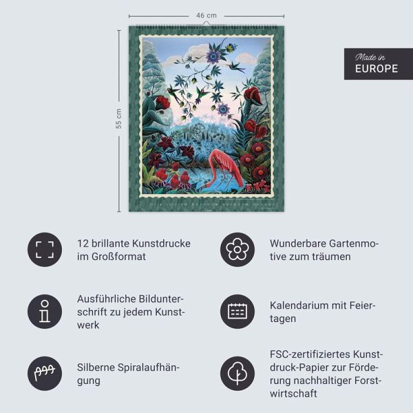 - Blühende Fantasien, die ihr Heim in ein Gartenparadies verwandeln: Monatskalender 2026 mit farbenfrohen Bildern von Marie Amalia Bartolini- Mit der Kraft der Farben: Wandkalender XL im Format 46 x 55 cm mit üppiger Botanik und exotischen Tieren, der die Lebensfreude zelebriert- Naive Malerei at its best! Kalender mit großen Kunstdrucken in Spitzenqualität mit fantastischen Motiven- Der pflegeleichte Indoor-Garten für zuhause: Kunstkalender im Großformat mit opulenten Pflanzen und knallbunten Vögeln- Immer das richtige Geschenk für Kunstliebhaber:innen: große Wandkalender von Weingarten im Athesia Kalenderverlag
