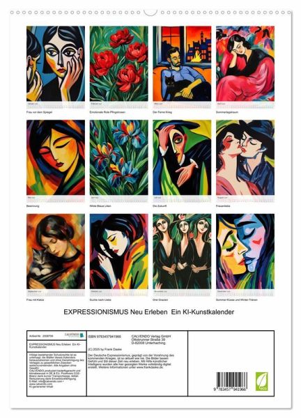 PREMIUM-LINIE - Brillanter Fotokalender mit 12 wunderschönen Motiven, Kunstdruck in Hochglanz in Museumsqualität.QUALITÄT - edle Materialien, stabile Rückwand mit 2 innovativen Einstecktaschen für eine optimale Präsentation an der Wand.NACHHALTIG - deutliche Abfallreduzierung durch bedarfsgerechte Einzelstückfertigung, umweltfreundliches FSC-zertifiziertes Papier, Produktion in Deutschland, klimabewusste Logistik.PERFEKTES GESCHENK - Kalender für Freunde und Familie, für Kinder und Erwachsene, jung und alt, zu Weihnachten, Geburtstag oder zwischendurch.Dieser Kalender läßt Gefühl und Stil des Expressionismus mit Hilfe von KI neu erleben. von Autor(in): Frank Daske