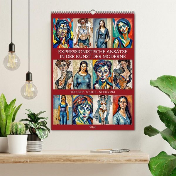 Mit diesem Kalender haben wir Malweisen und Bildsprache von drei verschiedenen Künstlern verglichen, deren Werke unterschiedlich aussehen, die aber alle dem Expressionismus zugeordnet werden. Es werden keine Originalwerke gezeigt, sondern beispielhafte Darstellungen, die wir mit Hilfe der künstlichen Intelligenz präsentieren dürfen. Mit kräftigen Farben und kantigen Formen lässt Ernst Ludwig Kirchner die aggressiven Emotionen seines Alltags aufblitzen. Ebenfalls kantige, oft verdrehte Formen, aber sehr reduzierte Farben lassen das Leid bei Egon Schiele erahnen, während Amadeo Modigliani seinen Körpern durch eine leicht verlängte Darstellung den Eindruck von Traurigkeit mitgibt. Erleben Sie mit unserem Kalender die Vielfalt expressionistischer Darstellungsarten.
