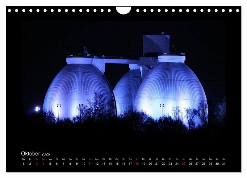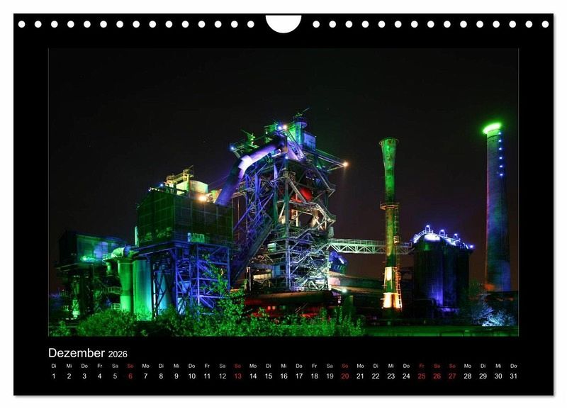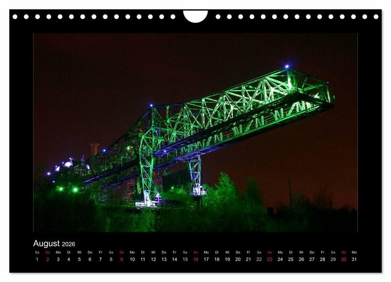 Das Ruhrgebiet ist in der Nacht bunt und hell beleuchtet. Tauchen Sie ein in die bunte und schillernde Welt des Ruhrgebiets. Orte wie der Innenhafen in Duisburg, Tiger & Turtle, das Geleucht in Moers, Slinky Springs to Fame in Oberhausen, die Halde Norddeutschland, das Klärwerk in Bottrop mit seinen blauen Eiern oder das Windrad im feuerroten Himmel. Dieser Kalender wird Ihre Wand verzaubern.