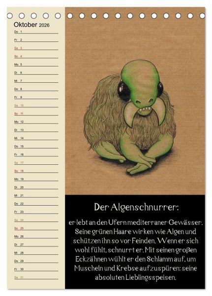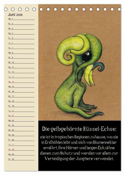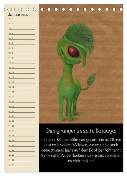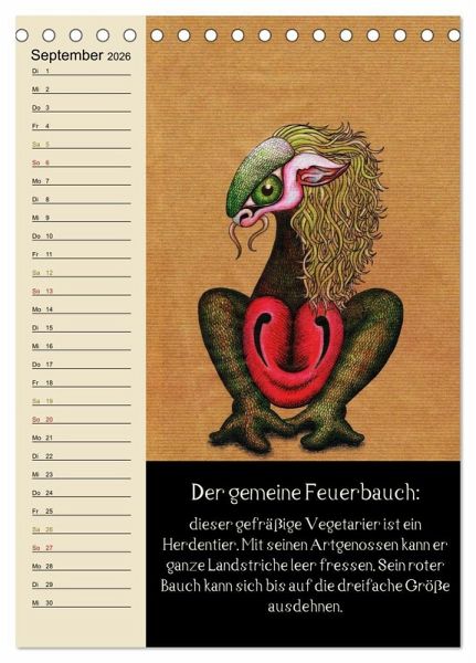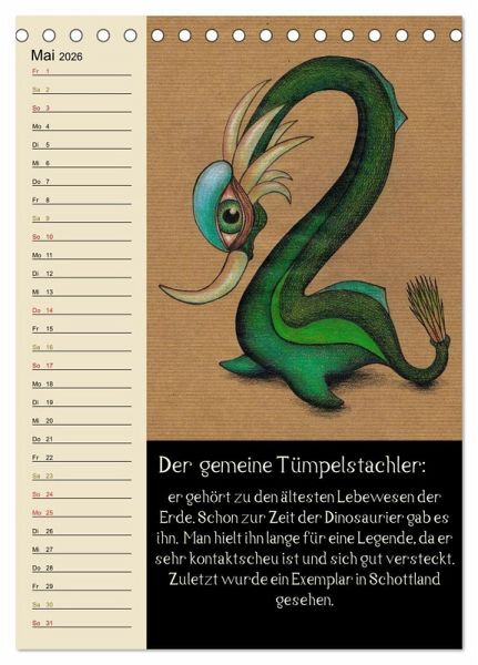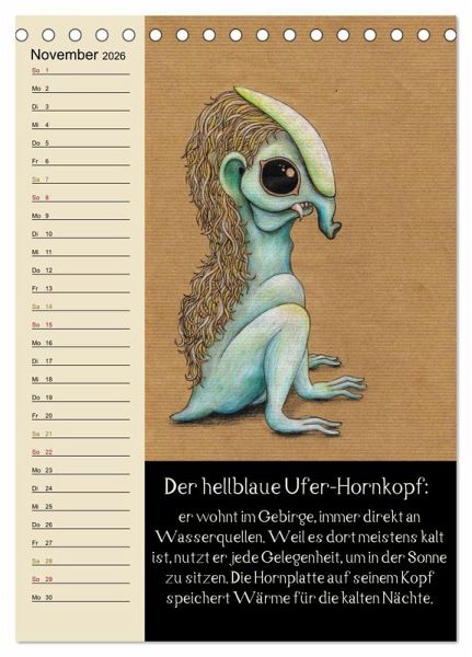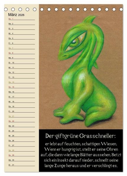 Dieser fabelhafte Monatsplaner zeigt charmante Illustrationen von Fantasietieren, welche jeweils in einigen Zeilen beschrieben werden. So gibt es jeden Monat ein neues Wesen mit seiner eigenen kleinen Geschichte dazu.