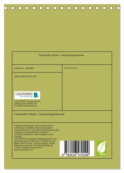 QUALITÄT - Hochwertiger Fotokalender mit 12 wunderschönen Motiven auf lichtbeständigem Bilderdruckpapier, robuste Spiralbindung.NACHHALTIG - deutliche Abfallreduzierung durch bedarfsgerechte Einzelstückfertigung, umweltfreundliches FSC-zertifiziertes Papier, Produktion in Deutschland, klimabewusste Logistik.PERFEKTES GESCHENK - Kalender für Freunde und Familie, für Kinder und Erwachsene, jung und alt, zu Weihnachten, Geburtstag oder zwischendurch.VIELFALT - Bildkalender in verschiedenen Formaten, z.B. DIN A5, DIN A4, DIN A3 sowie DIN A2. Ob Naturmotiv, Gemälde oder Fotos, ideal für ein persönliches Wohlfühlambiente.Malerischer Geburtstagskalender mit fabelhaften Illustrationen von Fantasietieren von Autor(in): Sophia Sanner