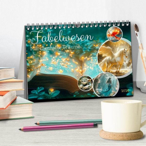Stellen Sie sich einen bezaubernden Kalender voller märchenhafter Fantasiewesen und Orte vor, perfekt für Kinder. Jeden Monat gibt es ein neues Fabelmotiv - ein freundlicher Yeti, der in verschneiten Bergen spielt, eine anmutige Meerjungfrau, die in einem malerischen Unterwasserreich schwimmt, eine zarte Fee, die in Gedanken versunken ist, und ein schelmischer Troll, der in einem verwunschenen Wald Wache hält. Vor lebhaften, traumhaften Kulissen erweckt dieser Kalender eine magische Reise zum Leben, die das ganze Jahr über die Fantasie anregt und viele weitere Szenen zum Entdecken bietet. Lassen Sie sich von 12 Bildern inspirieren, die in Zusammenarbeit mit KI entstanden sind.