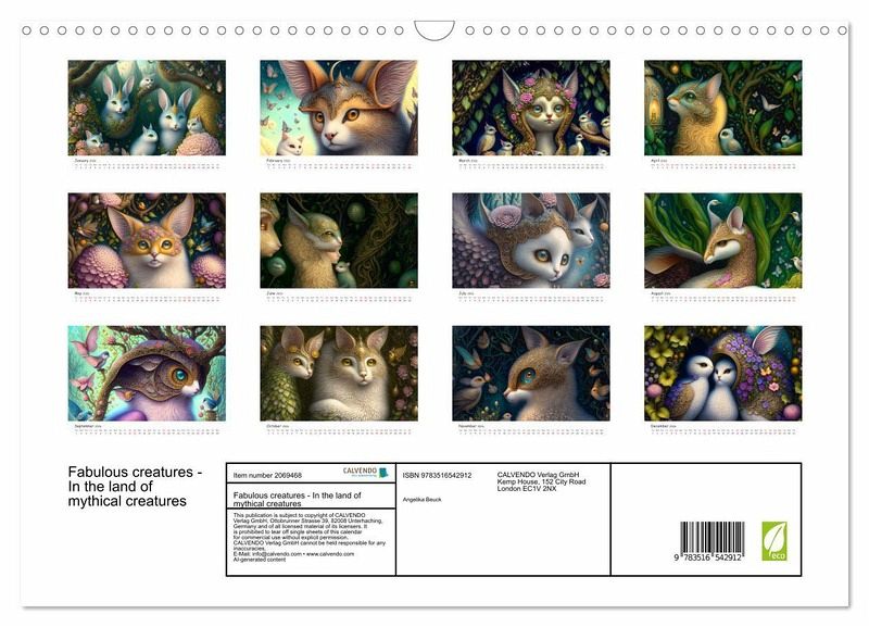 QUALITY - High-quality photo calendar with 12 beautiful images on light-resistant paper, robust spiral binding with hanger.SUSTAINABLE - Significant waste reduction due to print-on-demand production, environmentally friendly FSC-certified paper, produced in the UK, climate-conscious logistical processes.PERFECT GIFT - calendars for friends and family, for children, all ages and all occasions, from Christmas to birthdays and everything in between.LOTS OF CHOICE - Wall calendars in different sizes (DIN A4 and DIN A3), for any topic and personal taste, featuring photography, painting and illustrations.Fabulous animals from the land of fantasy, author: Angelika Beuck