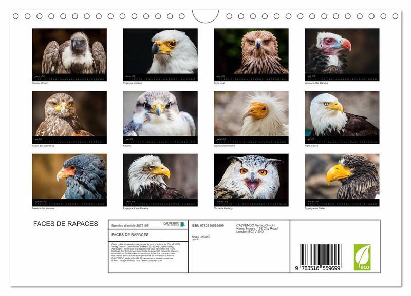 Dans ce calendrier vous trouverez debelles photos d'aigles, vautours, pygargues..., surnommés aussi les rapaces. Il a fallu beaucoup de patience et d'observation au photographe Arnaud LIATARD pour capturer tous ces portraits.