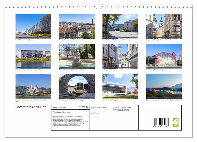 QUALITÄT - Hochwertiger Fotokalender mit 12 wunderschönen Motiven auf lichtbeständigem Bilderdruckpapier, robuste Spiralbindung mit Aufhängebügel.NACHHALTIG - deutliche Abfallreduzierung durch bedarfsgerechte Einzelstückfertigung, umweltfreundliches FSC-zertifiziertes Papier, Produktion in Deutschland, klimabewusste Logistik.PERFEKTES GESCHENK - Kalender für Freunde und Familie, für Kinder und Erwachsene, jung und alt, zu Weihnachten, Geburtstag oder zwischendurch.VIELFALT - Bildkalender in verschiedenen Formaten, z.B. DIN A5, DIN A4, DIN A3 sowie DIN A2. Ob Naturmotiv, Gemälde oder Fotos, ideal für ein persönliches Wohlfühlambiente.Hanna Wagner zeigt Monat für Monat die unterschiedlichen Facetten der oberösterreichischen Donaustadt Linz. von Autor(in): Hanna Wagner