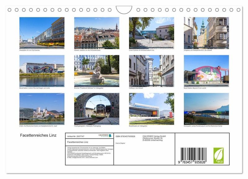 QUALITÄT - Hochwertiger Fotokalender mit 12 wunderschönen Motiven auf lichtbeständigem Bilderdruckpapier, robuste Spiralbindung mit Aufhängebügel.NACHHALTIG - deutliche Abfallreduzierung durch bedarfsgerechte Einzelstückfertigung, umweltfreundliches FSC-zertifiziertes Papier, Produktion in Deutschland, klimabewusste Logistik.PERFEKTES GESCHENK - Kalender für Freunde und Familie, für Kinder und Erwachsene, jung und alt, zu Weihnachten, Geburtstag oder zwischendurch.VIELFALT - Bildkalender in verschiedenen Formaten, z.B. DIN A5, DIN A4, DIN A3 sowie DIN A2. Ob Naturmotiv, Gemälde oder Fotos, ideal für ein persönliches Wohlfühlambiente.Hanna Wagner zeigt Monat für Monat die unterschiedlichen Facetten der oberösterreichischen Donaustadt Linz. von Autor(in): Hanna Wagner