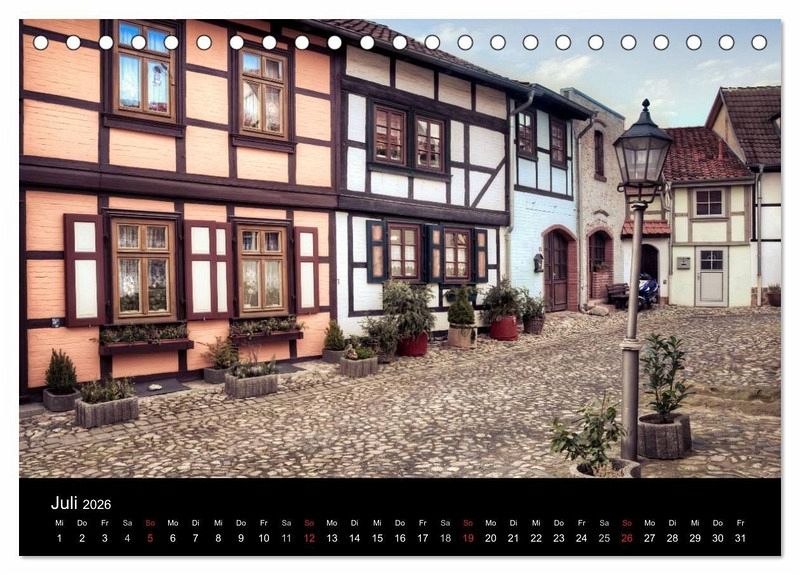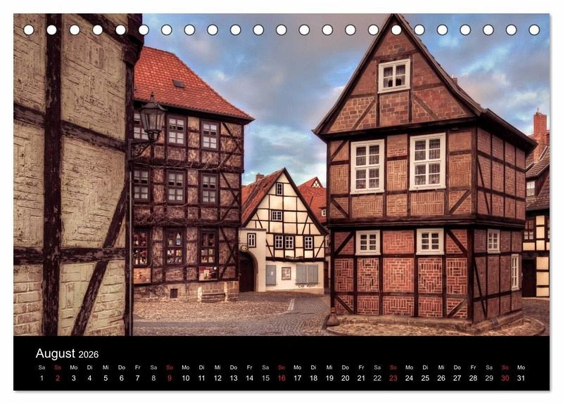 Fachwerkhäuser sind das Aushängeschild im Harz. Die Roten Dächer sind von weitem schon sichtbar. Viele der Häuser stammen aus dem 15. Jahrhundert und sind liebevoll restauriert worden. Osterwieck, Welterbestadt Quedlinburg und Wernigerode sind hier in diesem Kalender zu sehen.