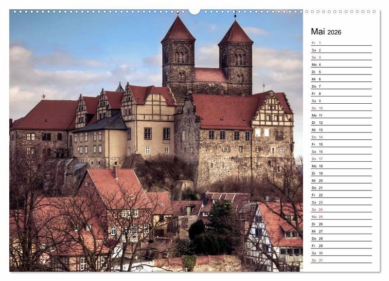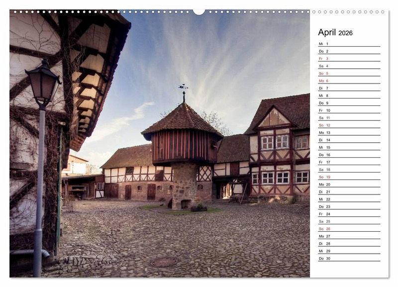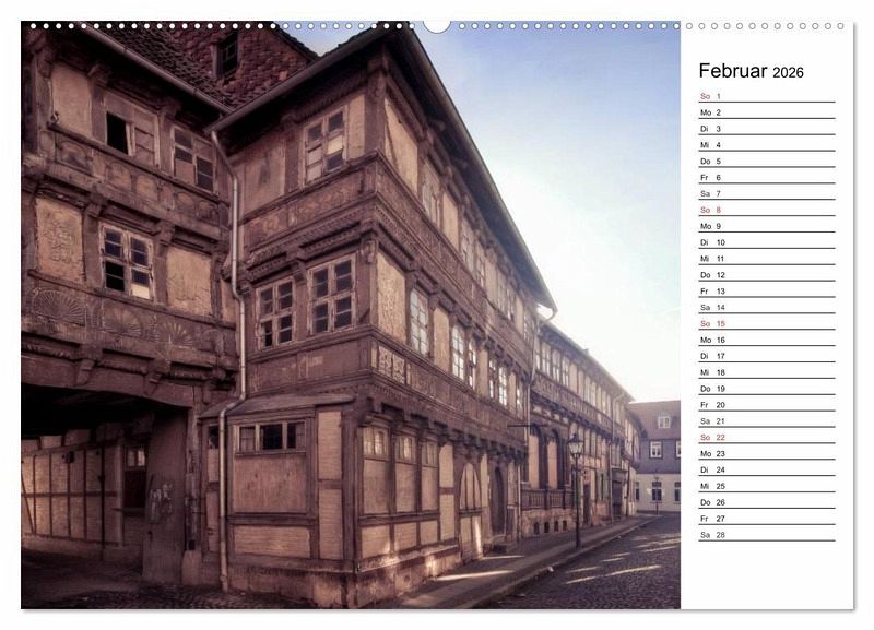 Fachwerkhäuser sind das Aushängeschild im Harz. Die Roten Dächer sind von weitem schon sichtbar. Viele der Häuser stammen aus dem 15. Jahrhundert und sind liebevoll restauriert worden. Osterwieck, Welterbestadt Quedlinburg und Wernigerode sind hier in diesem Kalender zu sehen.