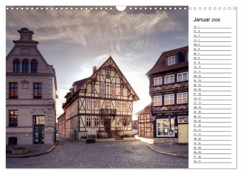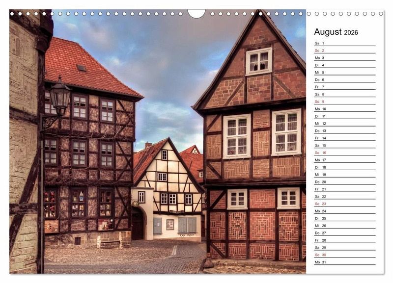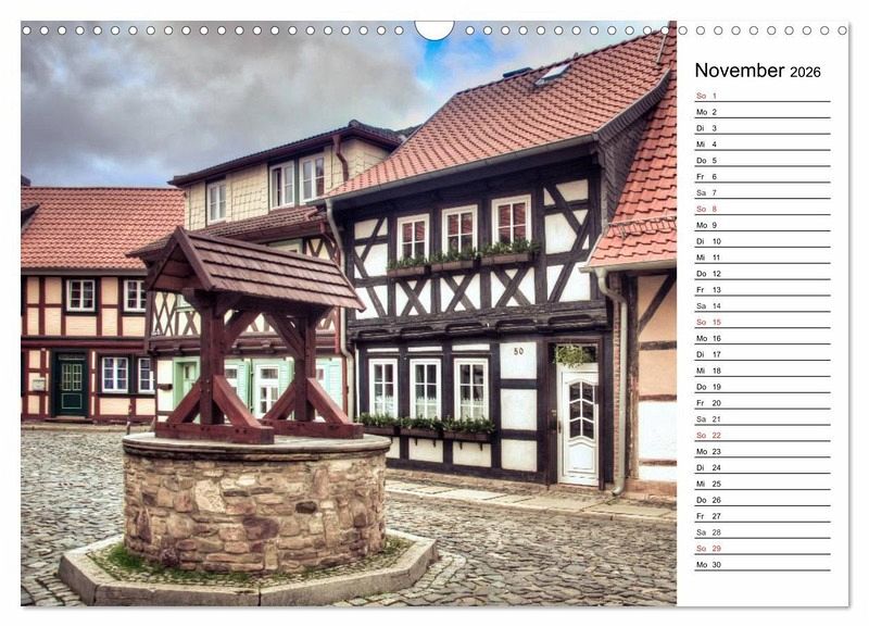 Fachwerkhäuser sind das Aushängeschild im Harz. Die Roten Dächer sind von weitem schon sichtbar. Viele der Häuser stammen aus dem 15. Jahrhundert und sind liebevoll restauriert worden. Osterwieck, Welterbestadt Quedlinburg und Wernigerode sind hier in diesem Kalender zu sehen.