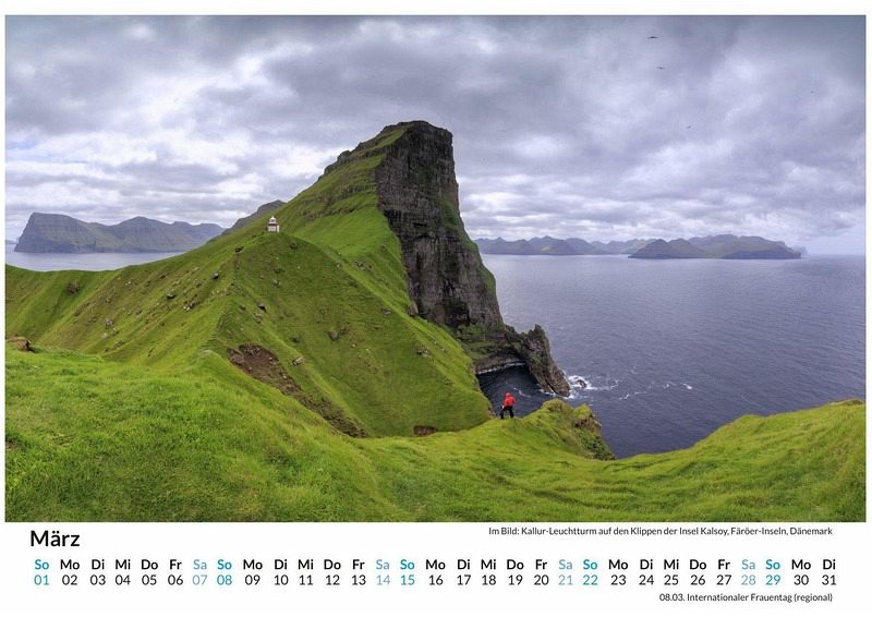 Entdecken Sie die atemberaubende Schönheit der Färöer Inseln mit unserem exklusiven Wandkalender! Lassen Sie sich Monat für Monat von 12 faszinierenden Motiven dieser einzigartigen Inselgruppe verzaubern - von dramatischen Küstenlandschaften bis hin zu idyllischen Fjorden. Gedruckt auf hochwertigem, lichtbeständigem Bilderdruckpapier, bringt dieser Kalender die Magie der Färöer direkt in Ihr Zuhause. Nachhaltigkeit liegt uns am Herzen: Unsere Kalender werden in Deutschland auf FSC-zertifiziertem Papier produziert. Perfekt als Geschenk oder für Ihre eigenen vier Wände - holen Sie sich ein Stück Naturwunder nach Hause! Jetzt bestellen und jeden Monat neu staunen! Hochwertig Erleben Sie ein Jahr voller Eleganz mit unserem Premium-Fotokalender. Jedes der 12 Motive ist auf hochwertigem, lichtbeständigem Bilderdruckpapier gedruckt, um die Lebendigkeit jedes Bildes zu bewahren. Die robuste Spiralbindung gewährleistet Langlebigkeit und einfache Handhabung. Nachhaltig Unser Engagement für die Umwelt spiegelt sich in jedem Exemplar wider. Durch die Produktion auf Abruf reduzieren wir signifikant unseren Abfall. Wir verwenden ausschließlich umweltfreundliches, FSC-zertifiziertes Papier. Stolz gefertigt in Deutschland, achten wir bei unserer Logistik auf Klimaschutz, um unseren ökologischen Fußabdruck zu minimieren. Das ideale Geschenk Dieser Kalender ist das perfekte Präsent für jeden Anlass - ob Weihnachten, Geburtstage oder einfach als liebevolle Aufmerksamkeit zwischendurch. Geeignet für Freunde, Familie, Kinder und Erwachsene gleichermaßen, bereichert er jedes Zuhause mit seiner Vielfalt und Schönheit, unabhängig vom Alter der Beschenkten.