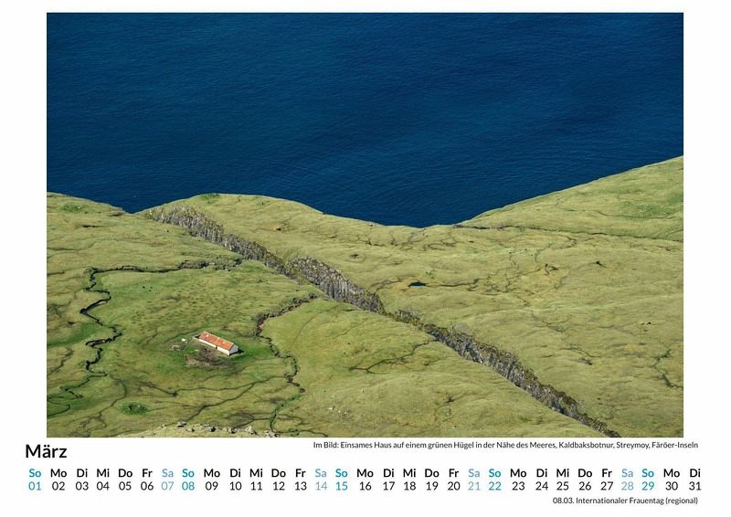 Entdecken Sie die atemberaubende Schönheit der Färöer Inseln mit unserem exklusiven Wandkalender! Lassen Sie sich Monat für Monat von 12 sorgfältig ausgewählten Motiven verzaubern, die die wilde Natur, dramatischen Küsten und malerischen Dörfer dieser einzigartigen Inselgruppe einfangen. Gedruckt auf hochwertigem, lichtbeständigem Bilderdruckpapier, bringt dieser Kalender die faszinierende Landschaft direkt in Ihr Zuhause. Nachhaltigkeit liegt uns am Herzen: Unsere Kalender werden in Deutschland auf FSC-zertifiziertem Papier produziert. Perfekt als Geschenk oder für die eigene Wand - holen Sie sich ein Stück Färöer in Ihr Leben! Hochwertig Erleben Sie ein Jahr voller Eleganz mit unserem Premium-Fotokalender. Jedes der 12 Motive ist auf hochwertigem, lichtbeständigem Bilderdruckpapier gedruckt, um die Lebendigkeit jedes Bildes zu bewahren. Die robuste Spiralbindung gewährleistet Langlebigkeit und einfache Handhabung. Nachhaltig Unser Engagement für die Umwelt spiegelt sich in jedem Exemplar wider. Durch die Produktion auf Abruf reduzieren wir signifikant unseren Abfall. Wir verwenden ausschließlich umweltfreundliches, FSC-zertifiziertes Papier. Stolz gefertigt in Deutschland, achten wir bei unserer Logistik auf Klimaschutz, um unseren ökologischen Fußabdruck zu minimieren. Das ideale Geschenk Dieser Kalender ist das perfekte Präsent für jeden Anlass - ob Weihnachten, Geburtstage oder einfach als liebevolle Aufmerksamkeit zwischendurch. Geeignet für Freunde, Familie, Kinder und Erwachsene gleichermaßen, bereichert er jedes Zuhause mit seiner Vielfalt und Schönheit, unabhängig vom Alter der Beschenkten.