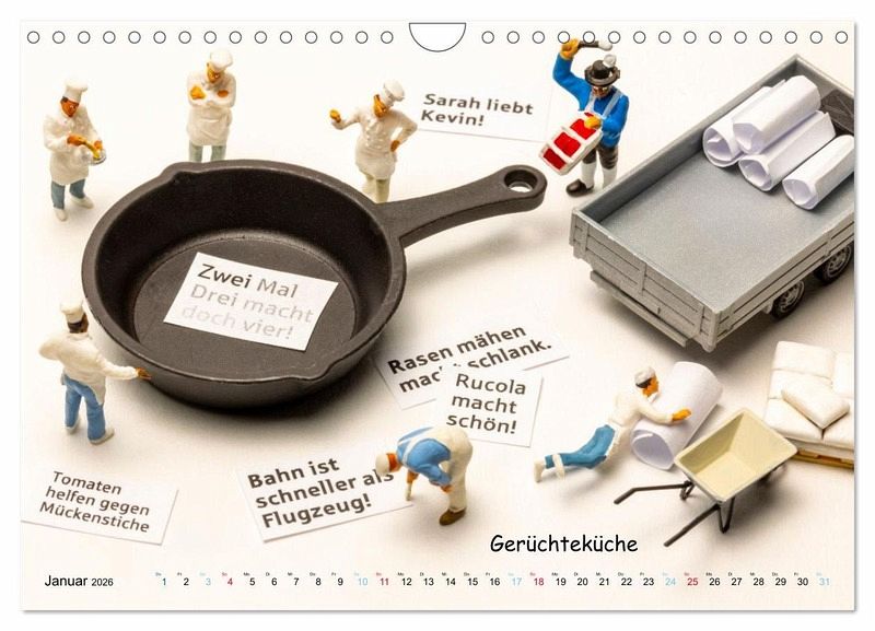 Erleben Sie das Jahr mit einem Lächeln und tauchen Sie ein in die skurrile Welt des Maßstabs 1:87! Unser einzigartiger Kalender zeigt 12 originelle Szenen mit Mini-Figuren - von "Fahrgaststreik!" über "Gerüchteküche" bis "Im-Geld-Schwimmer". Detailreich, skurril und garantiert schmunzelverdächtig. Perfekt für Figurenfans und Spaßliebhaber. Holen Sie sich diesen besonderen Kalender und erleben Sie Humor im Miniaturformat!