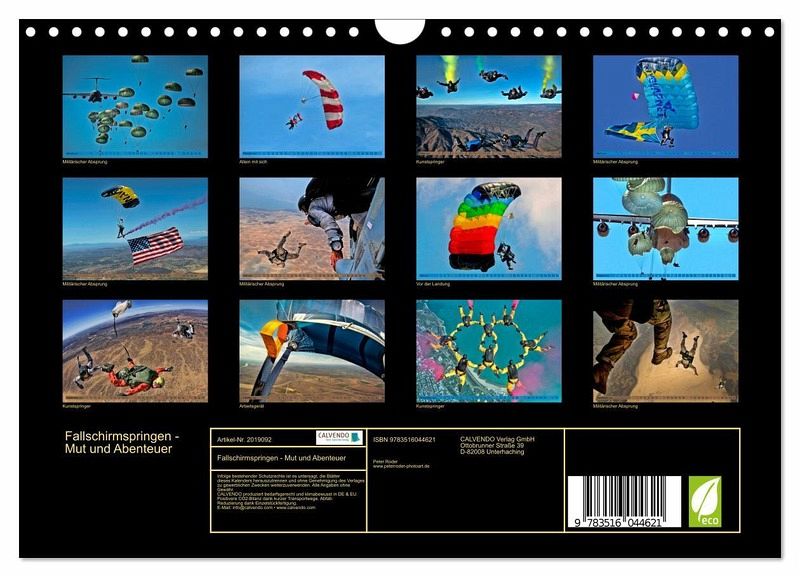 QUALITÄT - Hochwertiger Fotokalender mit 12 wunderschönen Motiven auf lichtbeständigem Bilderdruckpapier, robuste Spiralbindung mit Aufhängebügel.NACHHALTIG - deutliche Abfallreduzierung durch bedarfsgerechte Einzelstückfertigung, umweltfreundliches FSC-zertifiziertes Papier, Produktion in Deutschland, klimabewusste Logistik.PERFEKTES GESCHENK - Kalender für Freunde und Familie, für Kinder und Erwachsene, jung und alt, zu Weihnachten, Geburtstag oder zwischendurch.VIELFALT - Bildkalender in verschiedenen Formaten, z.B. DIN A5, DIN A4, DIN A3 sowie DIN A2. Ob Naturmotiv, Gemälde oder Fotos, ideal für ein persönliches Wohlfühlambiente.Fallschirmspringen - eine unglaublich extreme, aber auch faszinierende Erfahrung. von Autor(in): Peter Roder