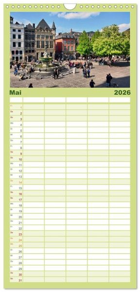 tlicher Familienkalender mit 5 Spalten für bis zu 5 Personen für mehr Struktur im Alltag - so bleiben alle Termine im Blick!ÜBERSICHTLICH - mit farblich getrennten Wochen- und Feiertagen. Die einzelnen Felder bieten genügend Platz für Eintragungen. So macht Organisieren Spaß!FANTASTISCHE BILDER - Dieser Planer ist nicht nur eine nützliche Hilfe im Alltag, sondern schmückt gleichzeitig Ihr Zuhause. Ideal auch als Geschenk.FÜR ALLE STIFTE GEEIGNET - ganz egal, ob Sie lieber mit Kugelschreiber oder Bleistift schreiben.NACHHALTIG - deutliche Abfallreduzierung durch bedarfsgerechte Einzelstückfertigung, umweltfreundliches FSC-zertifiziertes Papier, Produktion in Deutschland, klimabewusste Logistik.Spaziergang durch die Kaiserstadt Aachen von Autor(in): Thomas Bartruff