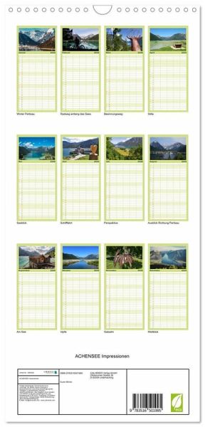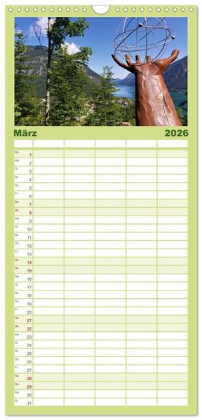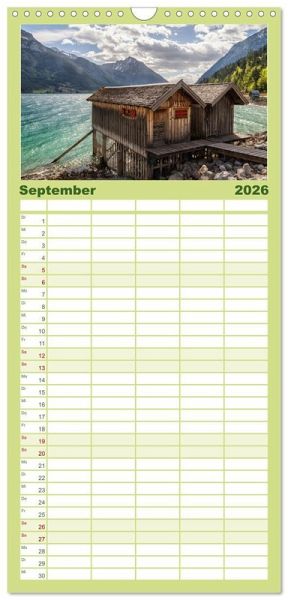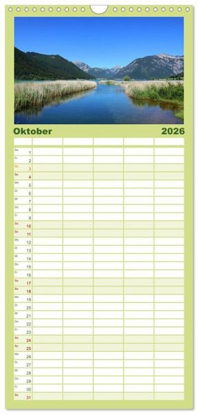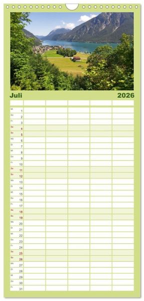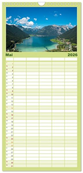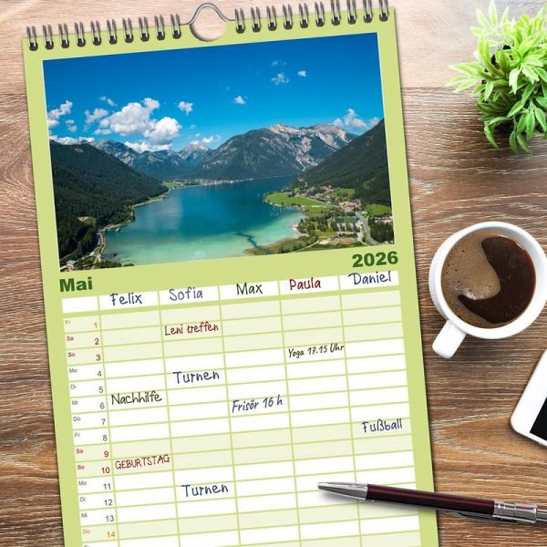PRAKTISCH - übersichtlicher Familienkalender mit 5 Spalten für bis zu 5 Personen für mehr Struktur im Alltag - so bleiben alle Termine im Blick!ÜBERSICHTLICH - mit farblich getrennten Wochen- und Feiertagen. Die einzelnen Felder bieten genügend Platz für Eintragungen. So macht Organisieren Spaß!FANTASTISCHE BILDER - Dieser Planer ist nicht nur eine nützliche Hilfe im Alltag, sondern schmückt gleichzeitig Ihr Zuhause. Ideal auch als Geschenk.FÜR ALLE STIFTE GEEIGNET - ganz egal, ob Sie lieber mit Kugelschreiber oder Bleistift schreiben.NACHHALTIG - deutliche Abfallreduzierung durch bedarfsgerechte Einzelstückfertigung, umweltfreundliches FSC-zertifiziertes Papier, Produktion in Deutschland, klimabewusste Logistik.Am Berg, am See, im Herzen von Autor(in): Susan Michel